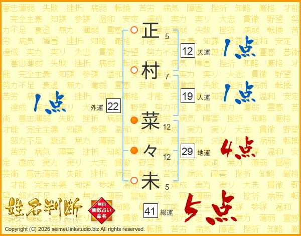 正村菜々未さんの総運は41画の5点!