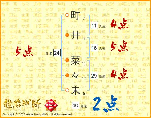 町井菜々未さんの総運は40画の2点!