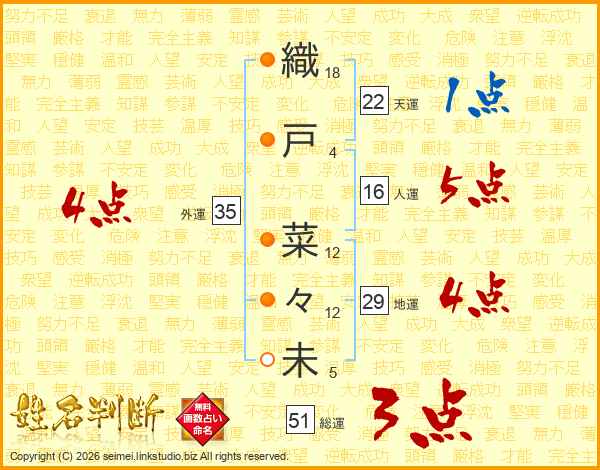 織戸菜々未さんの総運は51画の3点!