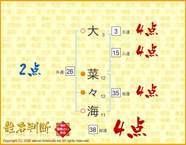 大菜々海さんの総運は38画の4点!