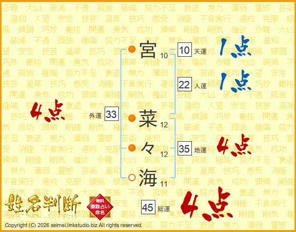 宮菜々海さんの総運は45画の4点!