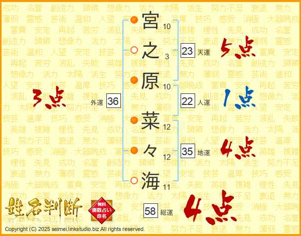 宮之原菜々海さんの外運は36画の3点!