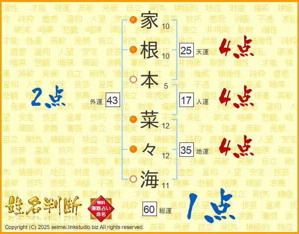 家根本菜々海さんの天運は25画の4点!