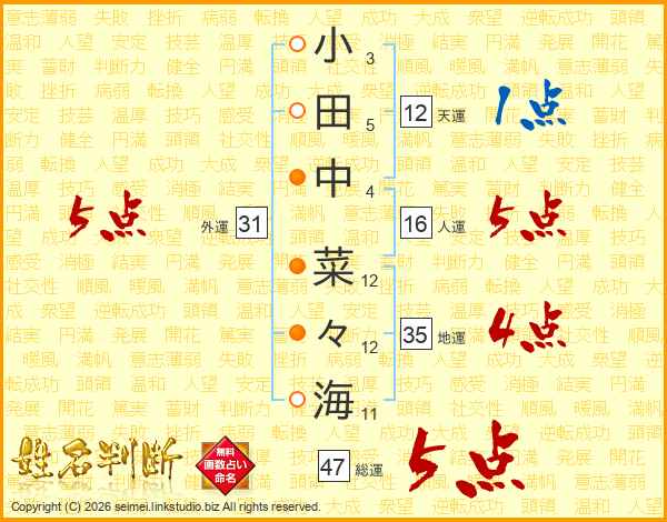 小田中菜々海さんの総運は47画の5点!