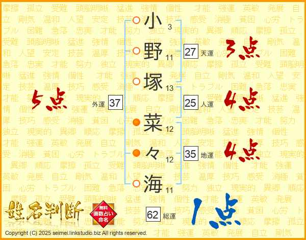 小野塚菜々海さんの外運は37画の5点!
