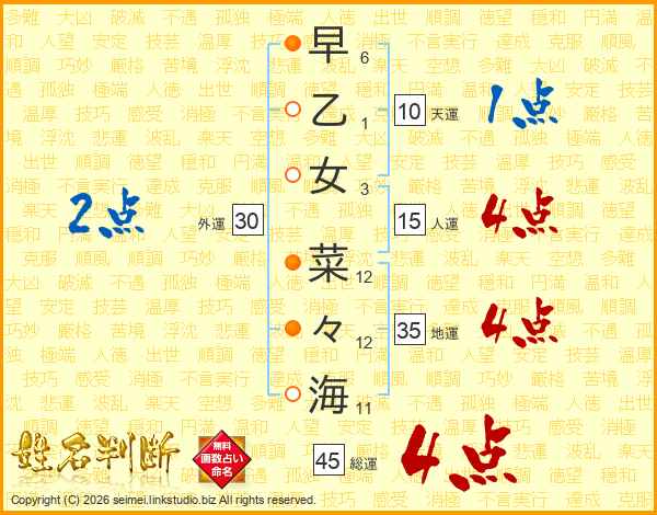 早乙女菜々海さんの総運は45画の4点!