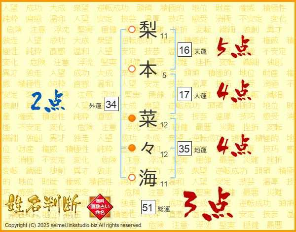 梨本菜々海さんの総運は51画の3点!