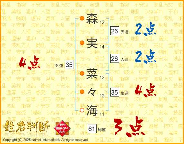森実菜々海さんの外運は35画の4点!