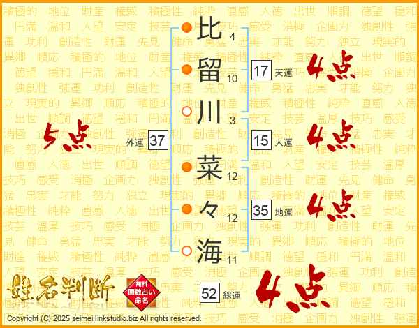 比留川菜々海さんの総運は52画の4点!