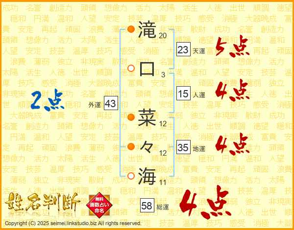 滝口菜々海さんの総運は58画の4点!