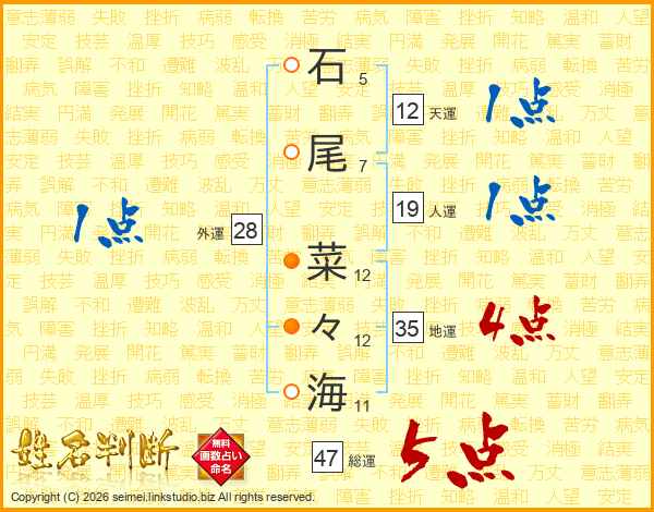石尾菜々海さんの総運は47画の5点!