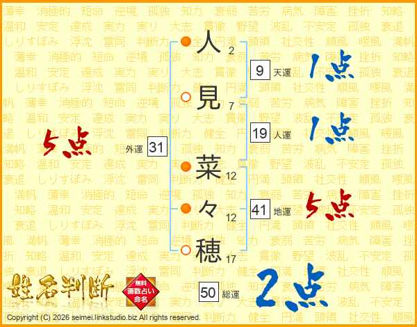 人見菜々穂さんの総運は50画の2点!
