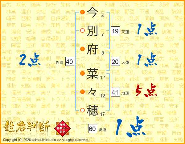 今別府菜々穂さんの地運は41画の5点!
