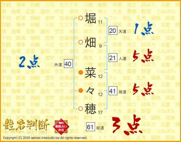 堀畑菜々穂さんの地運は41画の5点!