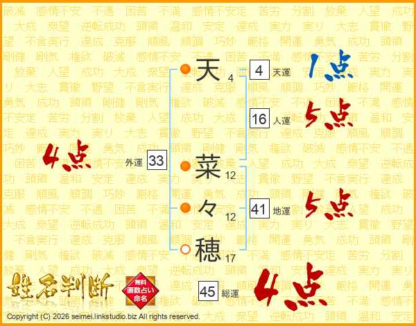 天菜々穂さんの外運は33画の4点!