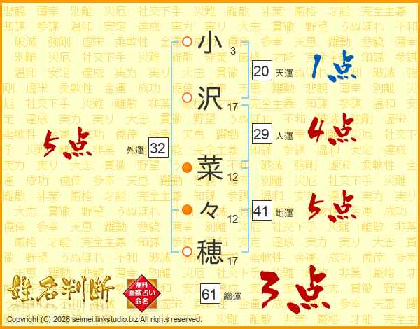小沢菜々穂さんの外運は32画の5点!