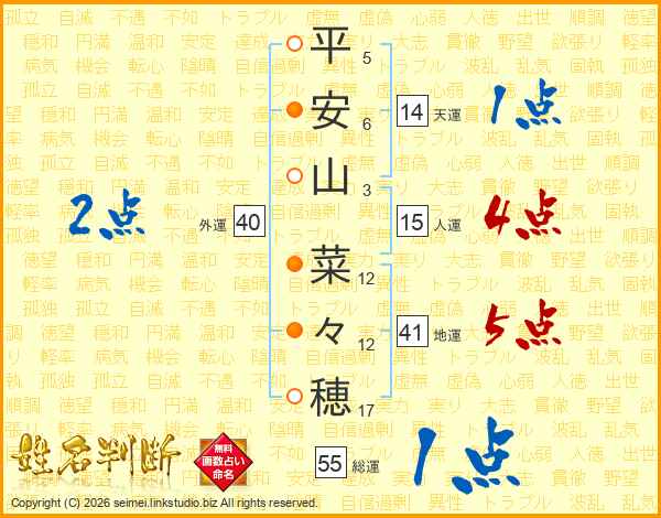 平安山菜々穂さんの地運は41画の5点!