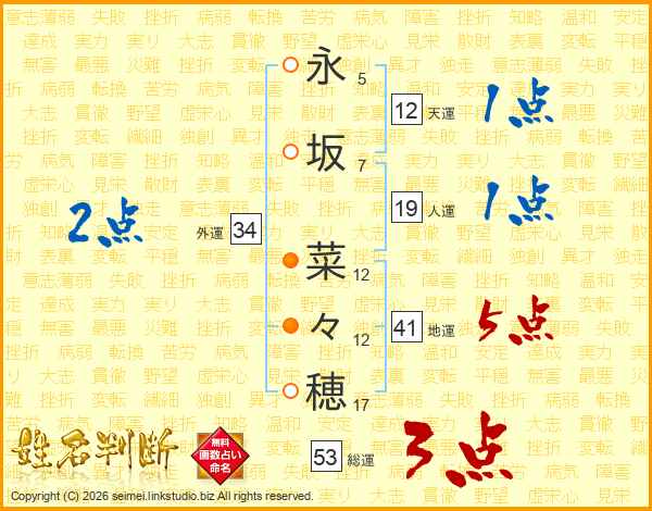 永坂菜々穂さんの総運は53画の3点!