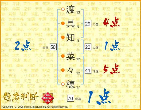 渡具知菜々穂さんの地運は41画の5点!