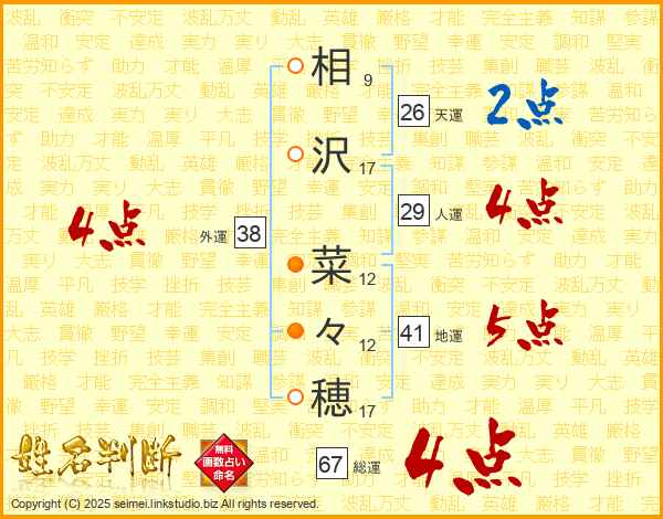 相沢菜々穂さんの総運は67画の4点!