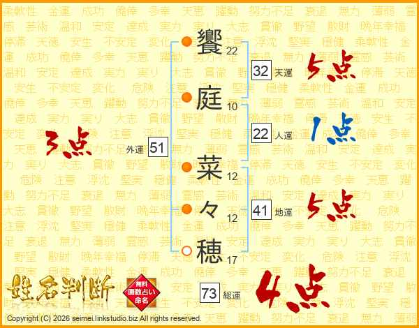 饗庭菜々穂さんの総運は73画の4点!
