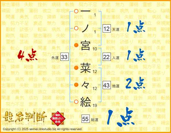 一ノ宮菜々絵さんの外運は33画の4点!