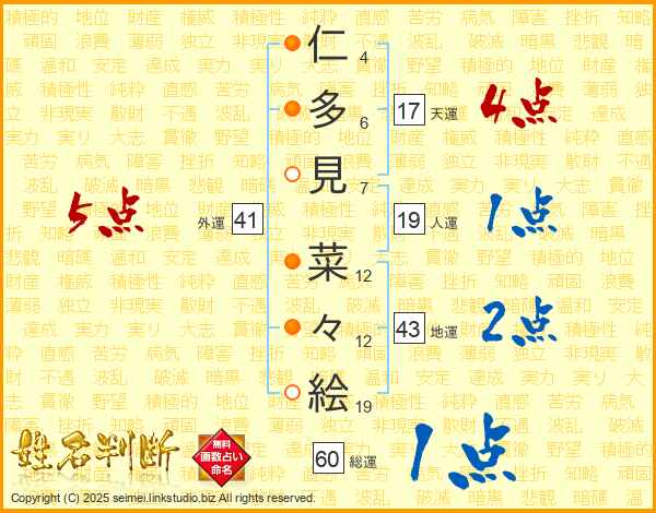 仁多見菜々絵さんの天運は17画の4点!