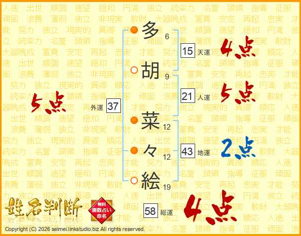 多胡菜々絵さんの総運は58画の4点!
