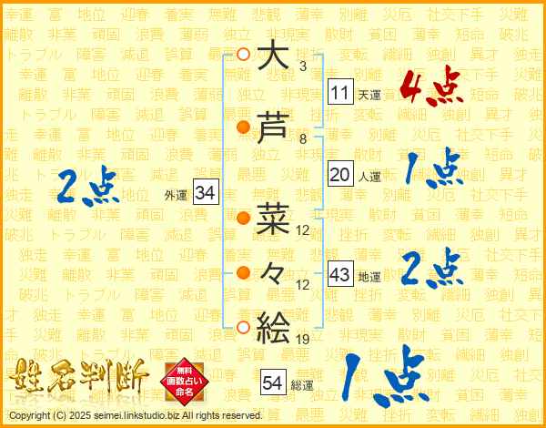 大芦菜々絵さんの人運は20画の1点!