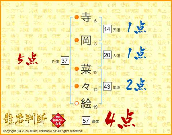 寺岡菜々絵さんの総運は57画の4点!