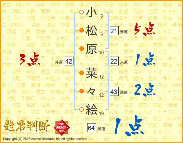 小(3画)松(8画)原(10画) 菜(12画)々(12画)絵(19画)