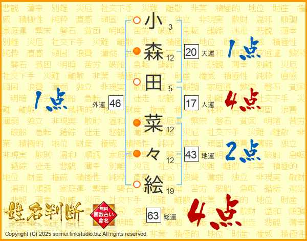 小森田菜々絵さんの総運は63画の4点!
