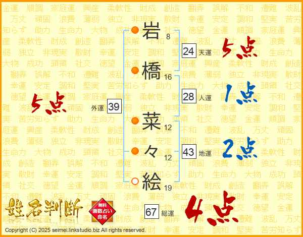 岩橋菜々絵さんの総運は67画の4点!