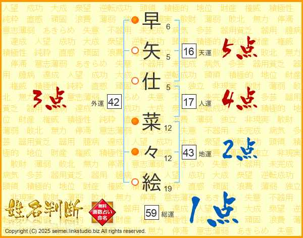 早矢仕菜々絵さんの総運は59画の1点!
