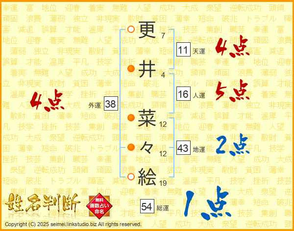 更井菜々絵さんの外運は38画の4点!