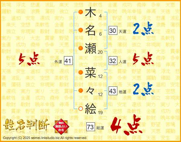 木名瀬菜々絵さんの総運は73画の4点!