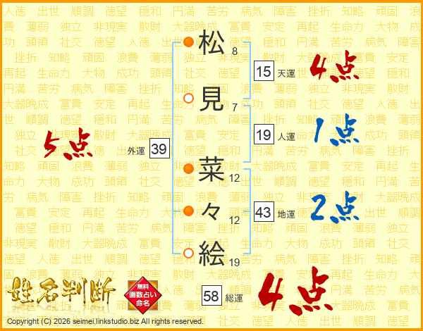 松見菜々絵さんの総運は58画の4点!