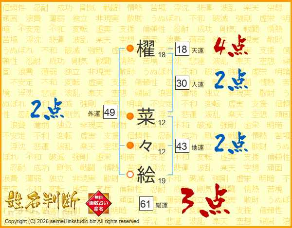 櫂菜々絵さんの総運は61画の3点!