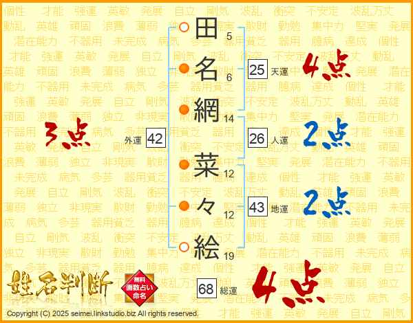 田名網菜々絵さんの天運は25画の4点!