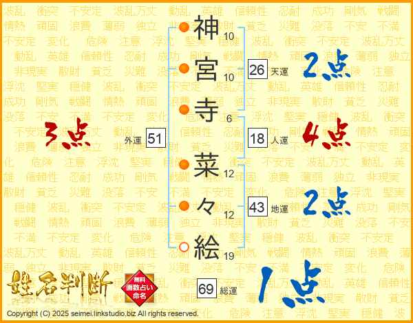 神宮寺菜々絵さんの総運は69画の1点!