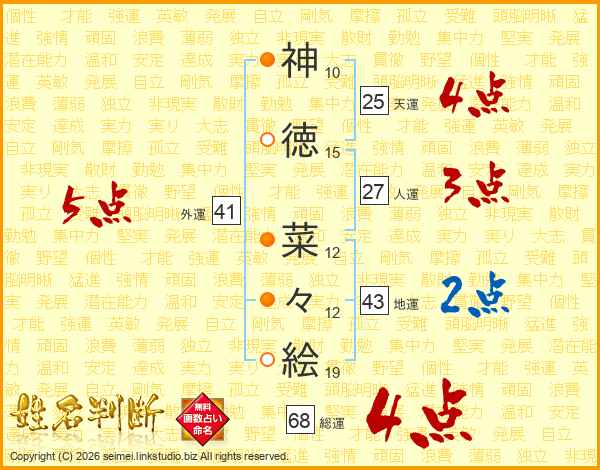 神徳菜々絵さんの総運は68画の4点!
