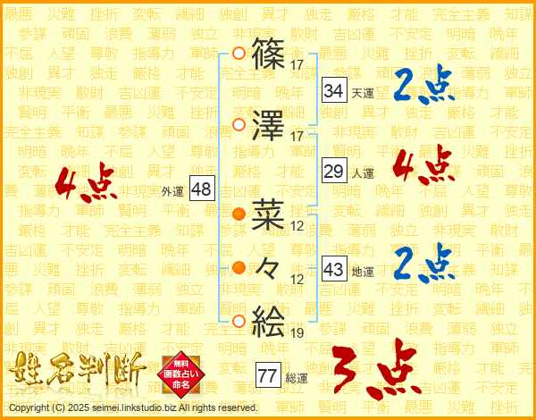 篠(17画)澤(17画) 菜(12画)々(12画)絵(19画)