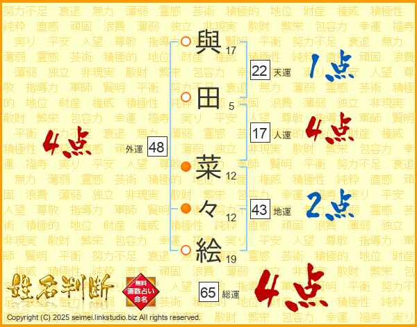 與田菜々絵さんの総運は65画の4点!