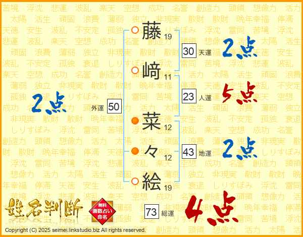 藤(19画)﨑(11画) 菜(12画)々(12画)絵(19画)