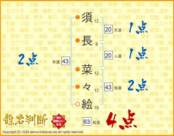 須(12画)長(8画) 菜(12画)々(12画)絵(19画)
