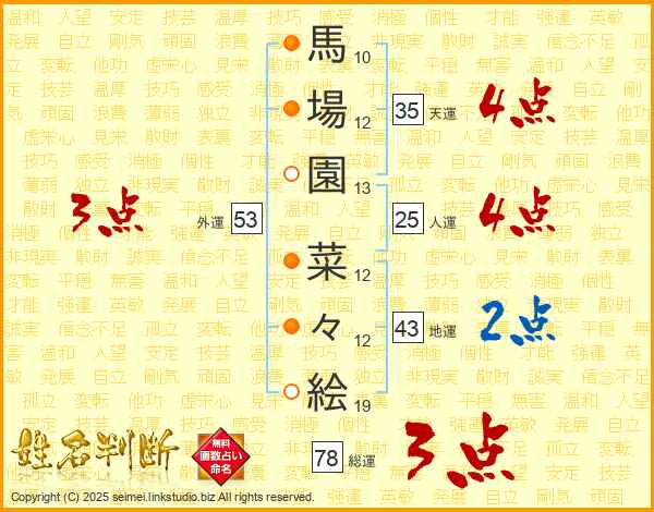馬場園菜々絵さんの人運は25画の4点!