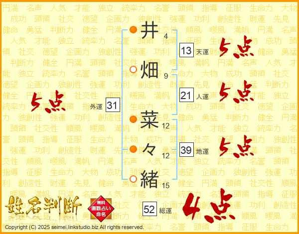 井畑菜々緒さんの総運は52画の4点!