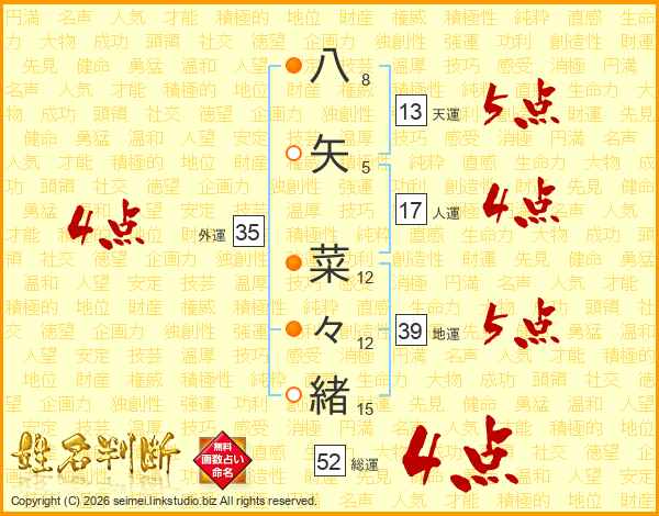 八矢菜々緒さんの総運は52画の4点!