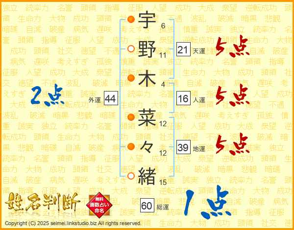 宇野木菜々緒さんの地運は39画の5点!
