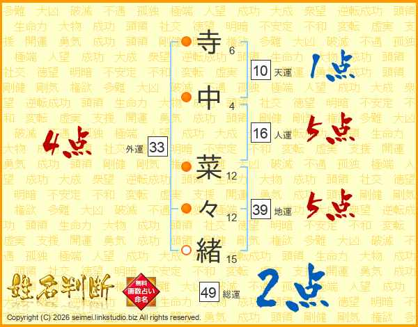 寺中菜々緒さんの総運は49画の2点!